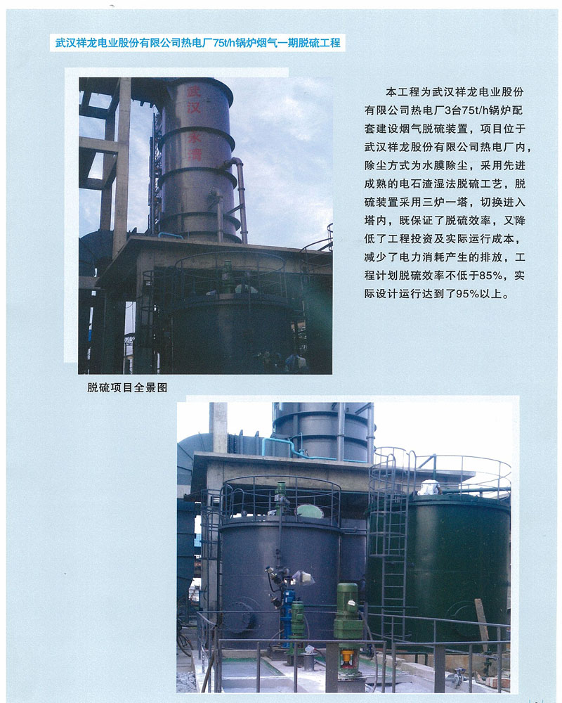 武漢祥龍電業股份有限公司熱電廠75t/h鍋爐一期脫硫工程